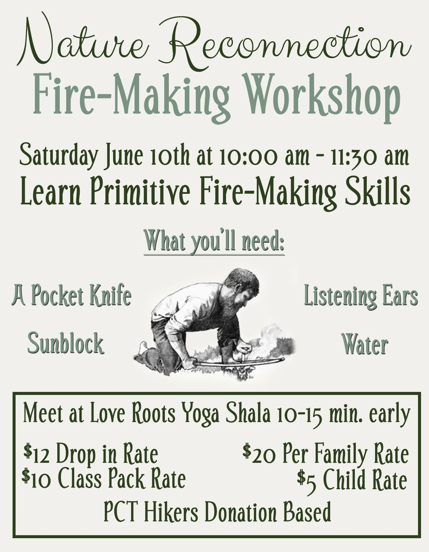 Join us for our Friction Fire Workshop Saturday, June 10th 10 am-11:30 am